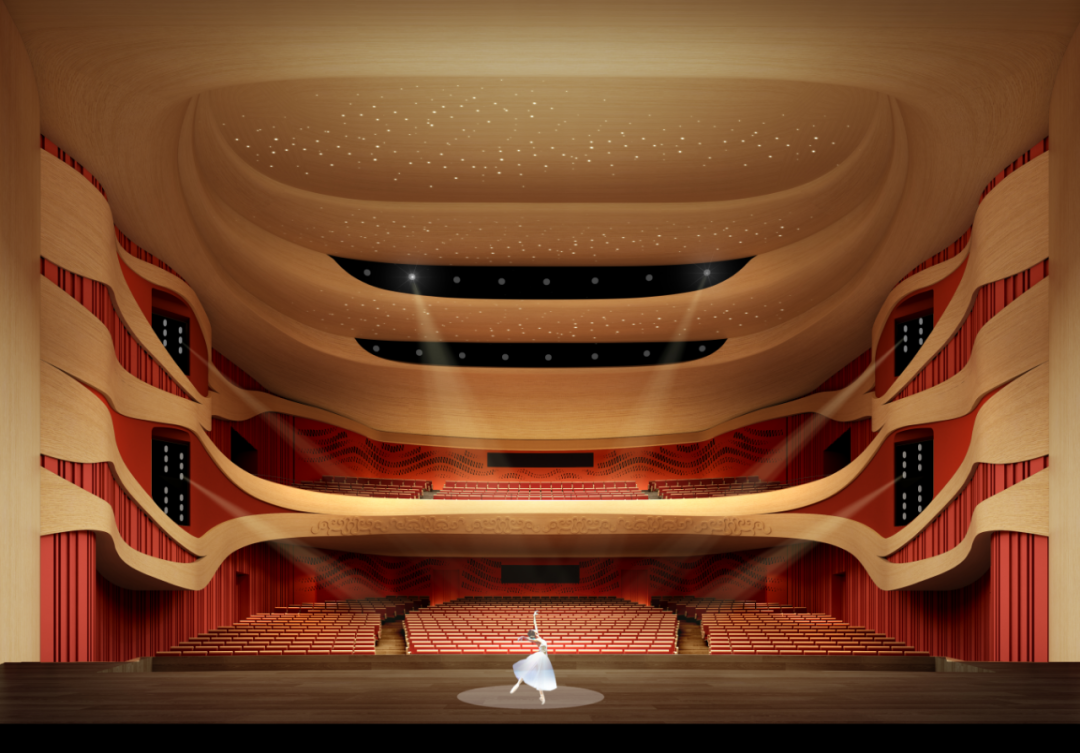 南充市大劇院觀眾廳采用現(xiàn)代藝術(shù)風(fēng)格,以南充特有的“絲綢文化”“嘉陵江文化”“紅色文化”“三國文化”為設(shè)計元素,運用抽象的設(shè)計手法,形成特有的動態(tài)變化,如同長袖善舞中的飄帶,豐富觀演的藝術(shù)氛圍,體現(xiàn)出南充地方文化特色的藝術(shù)魅力。在項目建設(shè)過程中,中孚泰團隊克服工期緊、難度大、涉及工種多、交叉作業(yè)頻繁、施工標(biāo)準(zhǔn)高等重重困難,憑借在大劇院裝飾領(lǐng)域積累的豐富經(jīng)驗和過硬技術(shù),如期完成項目建設(shè),再次證明了中孚泰在劇院建設(shè)專業(yè)細分領(lǐng)域的行業(yè)領(lǐng)先地位。獲此殊榮,是對中孚泰實力的高度認可。中孚泰表示,今后,將繼續(xù)依托聲學(xué)裝飾工程和聲光電集成的技術(shù)優(yōu)勢,進一步發(fā)揮引領(lǐng)作用,持續(xù)鑄造更多精品工程,貢獻出中孚泰人的光和熱。