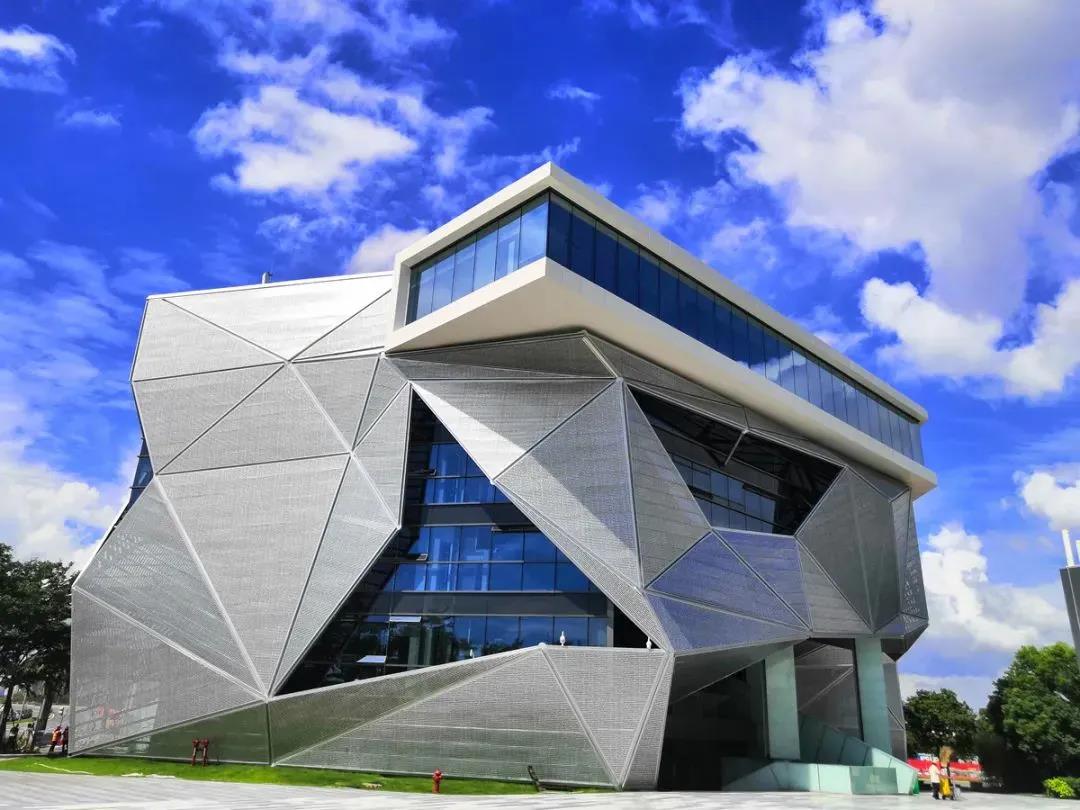 前海深港青年夢工場西區項目總用地面積9687.7㎡,總建筑面積為19933.5㎡,項目由1棟“加速器”、2棟“孵化器”組成。加速器外立面覆蓋著217個三角形切割面、374條棱線、147個交匯點,精密程度就像一顆渾然天成的鉆石,是服務深港及世界青年創新創業,幫助廣大青年實現創業夢想的國際化服務平臺。由嘉信建設承接的幕墻面積22474㎡,鋼結構370噸,幕墻形式主要有幕墻形式主要有構件式玻璃幕墻、點式玻璃幕墻、穿孔鋁板幕墻、特色發光柱、特色發光墻、鋁合金裝飾格柵、鋁板幕墻、鋁板雨蓬等。
