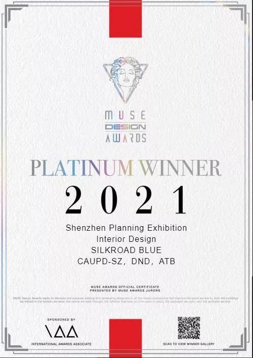近日,美國(guó)繆斯設(shè)計(jì)獎(jiǎng)(MUSE Design Award)2021第二季度全球獲獎(jiǎng)結(jié)果揭曉。在來自全球102個(gè)國(guó)家和地區(qū)的4.3W份優(yōu)秀參賽作品的角逐中,絲路視覺作品「深圳市城市規(guī)劃展」一舉獲得室內(nèi)設(shè)計(jì)類別最高榮譽(yù)鉑金獎(jiǎng)!