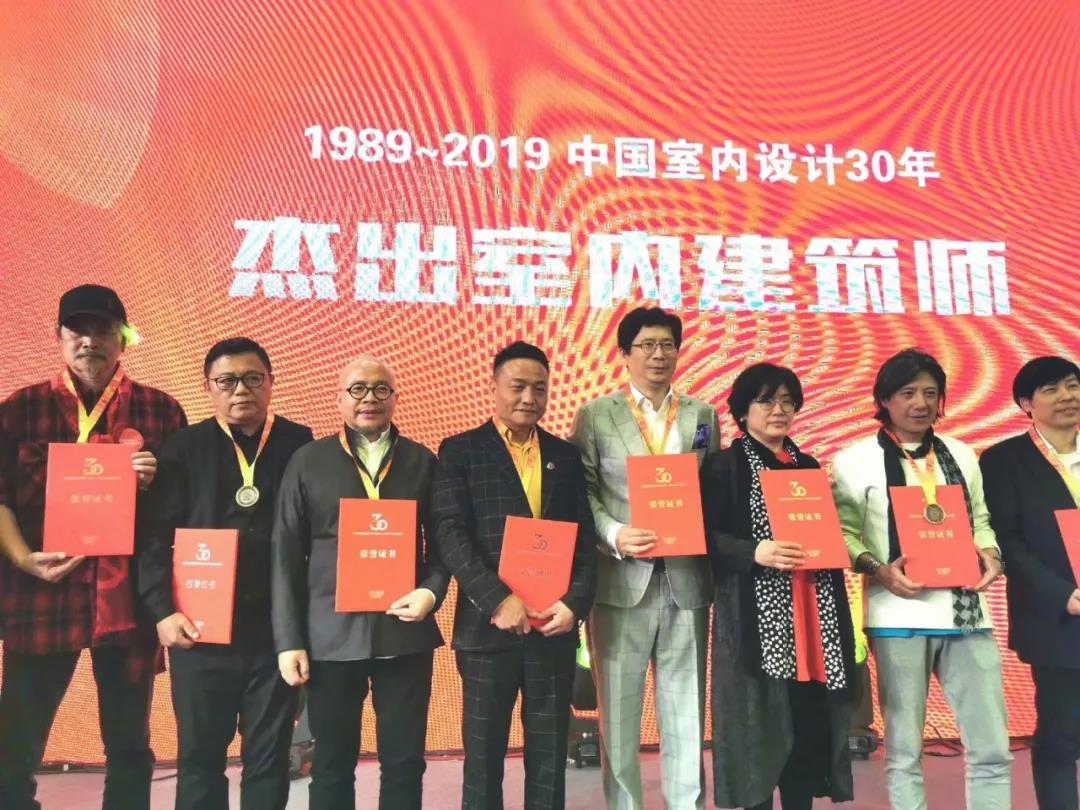 ▲ 楊邦勝(左三)領(lǐng)取“1989~2019全國杰出室內(nèi)建筑師”榮譽證書