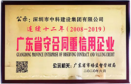 中科建設集團:連續十二年榮獲“廣東省守合同重信用企業”稱號