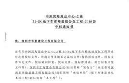 華能建設:中標深圳市中洲濱海商業中心-2棟B1-B4地下車庫精裝修分包工程