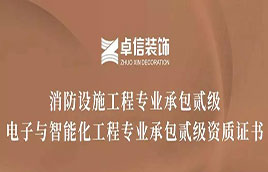 卓信裝飾:新增消防設(shè)施工程專業(yè)承包貳級和電子與智能化工程專業(yè)承包貳級資質(zhì)
