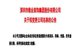 2023年3月31日,深圳市維業裝飾集團股份有限公司(以下簡稱“公司”或“維業股份”)第五屆董事會第十五次會議審議通過了《關于擬變更公司名稱的議案》。