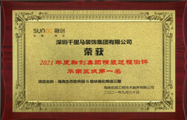 千里馬裝飾集團:融創美倫熙語項目榮獲“2021年度融創集團精裝過程測評華南區域第一名”