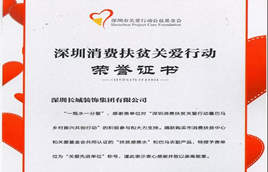 近日,深圳長城裝飾集團有限公司(以下稱“長城裝飾集團”)收到深圳市關愛行動公益基金會頒發的“深圳消費扶貧關愛行動榮譽證書”,并被授予“關愛先進單位”稱號。該證書旨在感謝長城裝飾集團對“深圳消費扶貧關愛行動暨巴馬鄉村振興共創行動”的大力支持。