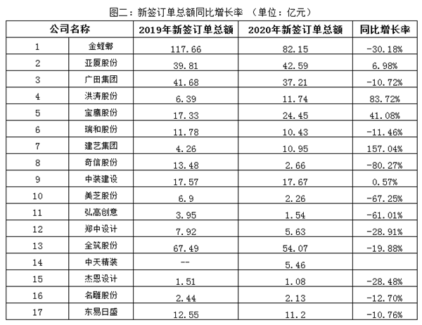 2020年第二季度,建筑室內設計新簽訂單金額10760.58萬元;截至報告期末累計已中標未簽約訂單金額3808.84萬元;及截至報告期末累計已簽約未完工訂單金額173754.23萬元。