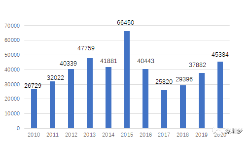 看完上述數(shù)據(jù),可能你還沒有太多感受,但從歷史數(shù)據(jù)來看,深圳正在迎來史上最大建房計劃,截至2020年12月31日,深圳已動工土地面積622.87萬平方米,如果按照2.0容積率計算,則意味著至少有1200萬平方米房子已動工。而據(jù)官方透露,2021年將有至少8.5萬套房。縱觀過去10年成交量,2021年的住宅供應(yīng)量足以創(chuàng)造一個新的成交紀(jì)錄,并有效地穩(wěn)定房價。
