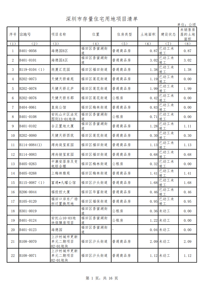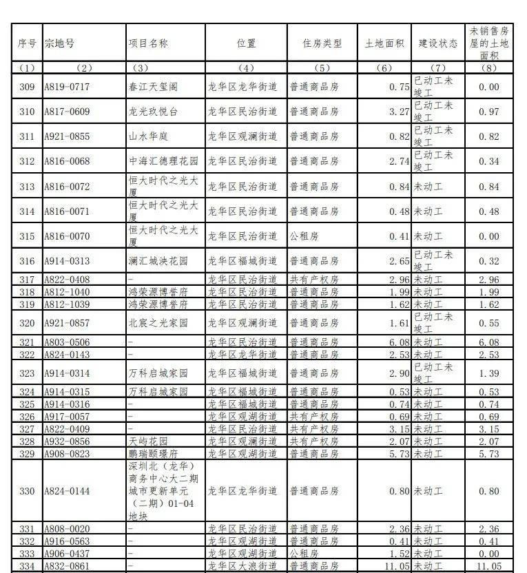 據(jù)發(fā)布的信息顯示,截至2020年12月31日,深圳存量宅地共有442個,總面積970.78公頃。