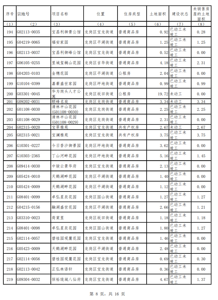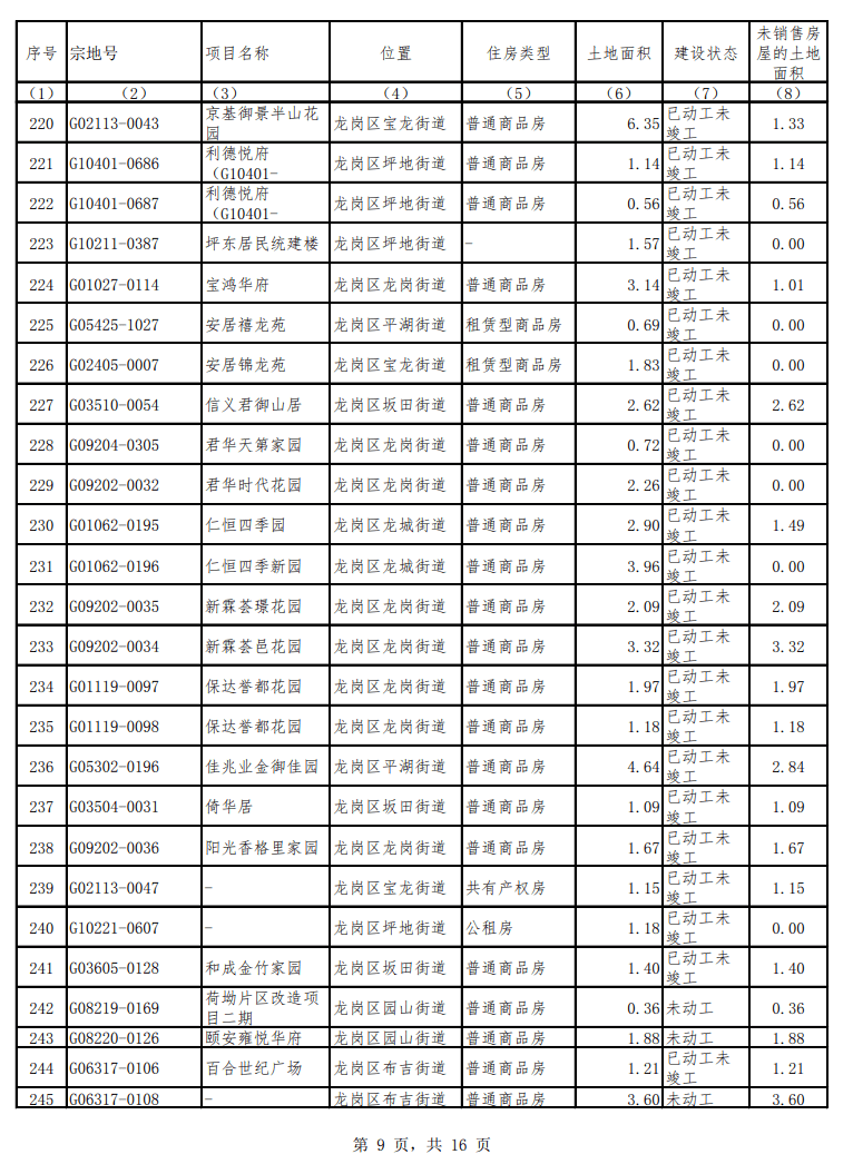 龍崗區(qū)存量宅地共有92個,其中橫崗街道2個,布吉街道5個,龍崗街道24個,平湖街道12個,寶龍街道15個,吉華街道3個,坪地街道7個,坂田街道13個,園山街道7個。