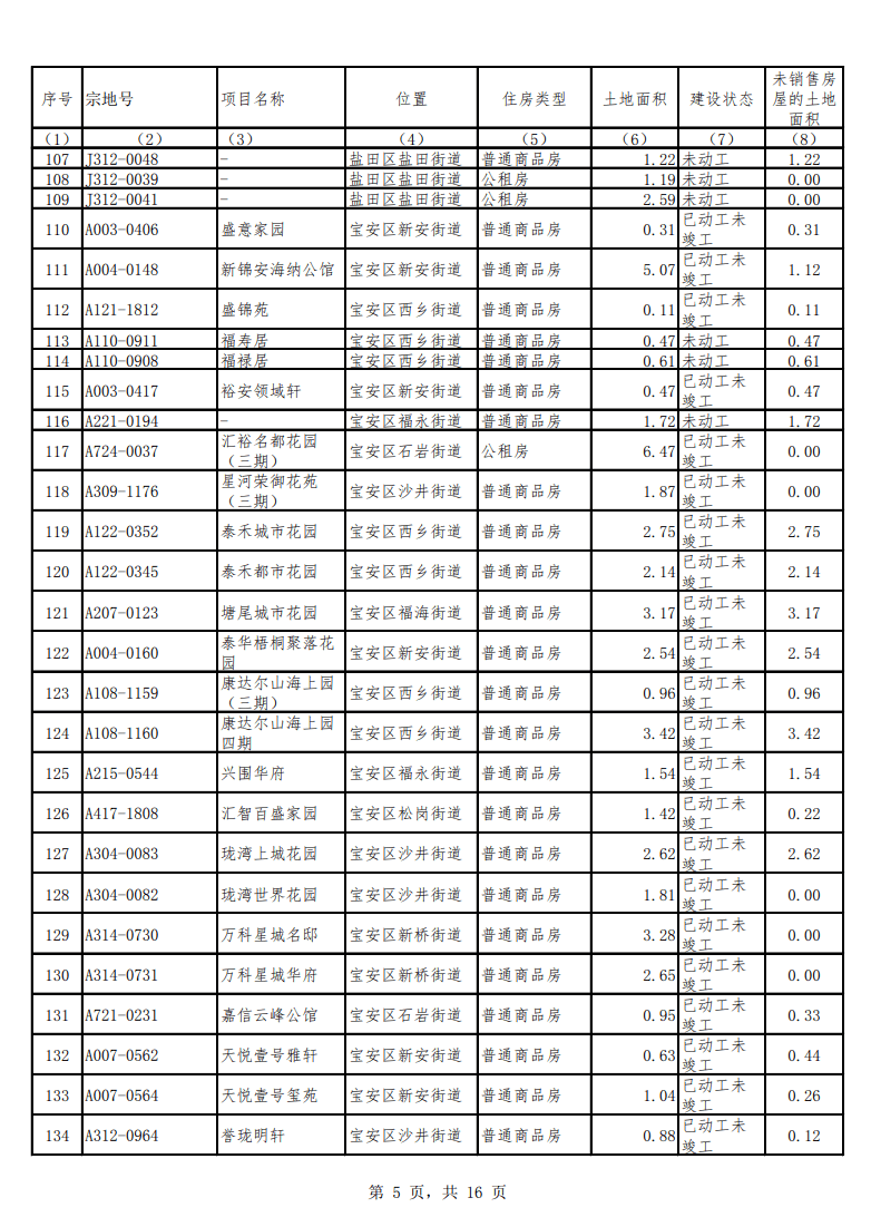 寶安區(qū)存量宅地共有76個,其中新安街道12個,西鄉(xiāng)街道16個,福永街道6個,松崗街道8個,沙井街道9個,新橋街道10個,石巖街道4個,福海街道3個,燕羅街道3個,航城街道5個。