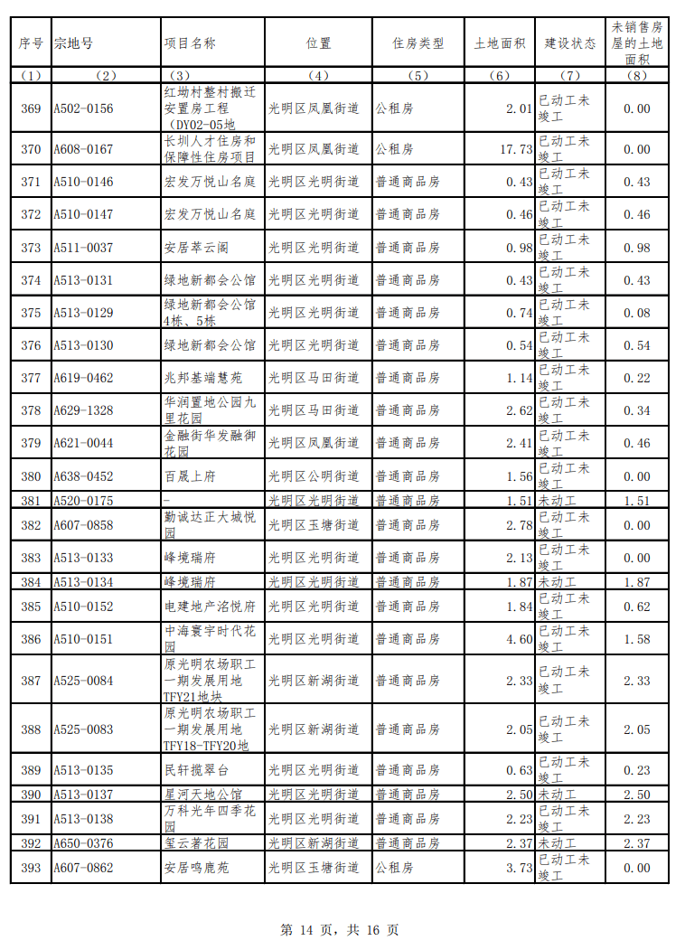 光明區(qū)存量宅地共有57個,其中公明街道3個,鳳凰街道12個,光明街道22個,馬田街道4個,玉塘街道4個,新湖街道12個。