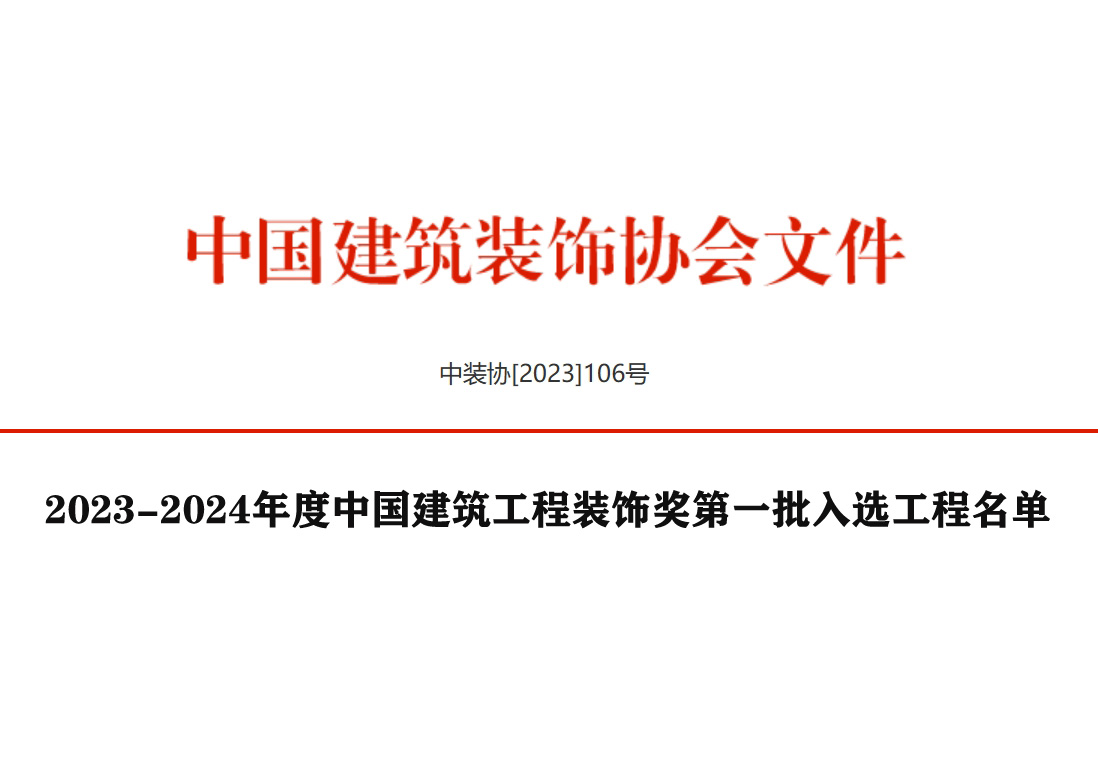 經(jīng)專家評審會審定,中國建筑裝飾協(xié)會核準(zhǔn),現(xiàn)將2023-2024年度中國建筑工程裝飾獎第一批入選工程名單(見附件)予以公告。