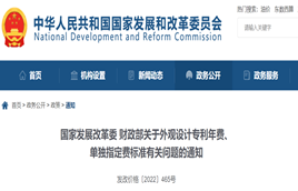 3月30日,國(guó)家發(fā)改委、財(cái)政部發(fā)布《關(guān)于外觀設(shè)計(jì)專(zhuān)利年費(fèi)、單獨(dú)指定費(fèi)標(biāo)準(zhǔn)有關(guān)問(wèn)題的通知》,通知指出:將外觀設(shè)計(jì)專(zhuān)利權(quán)期限由10年延長(zhǎng)為15年;指定進(jìn)入我國(guó)的外觀設(shè)計(jì)國(guó)際申請(qǐng)及國(guó)際注冊(cè)續(xù)展,相關(guān)申請(qǐng)人應(yīng)繳納單獨(dú)指定費(fèi)。規(guī)定自2022年5月5日起執(zhí)行。