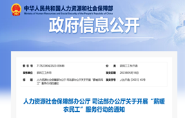 近日,人力資源社會保障部辦公廳、司法部辦公廳印發《關于開展“薪暖農民工”服務行動的通知》